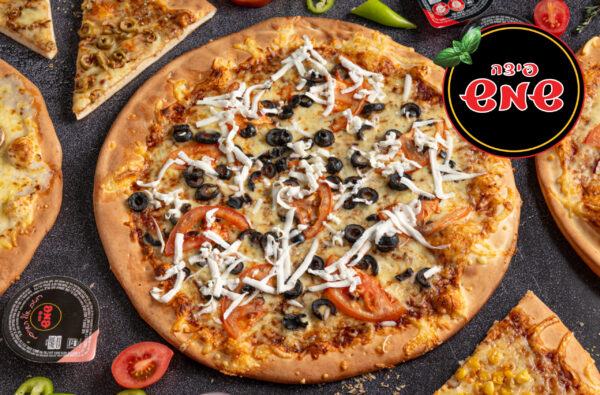 פיצה משפחתית יוונית/ חריפה+ לחם שום+ 2 פחיות בפיצה שמש